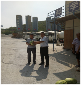入伏以來,我省各地驕陽似火,氣溫節(jié)節(jié)高升,直逼40度。7月25日上午,陜西省華源建筑工程有限責(zé)任公司工程部周部長一行深入公司所屬海林御苑項(xiàng)目部、華原西道項(xiàng)目部以及塑鋼窗廠、攪拌站等項(xiàng)目部、廠、站,代表公司慰問奮戰(zhàn)在高溫環(huán)境下的一線人員,為他們送去西瓜和公司的濃濃關(guān)愛,送去一抹綠蔭,送去一絲清涼。